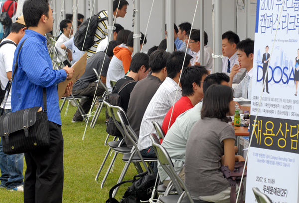 Ãë¾÷°ü¹® Åë°ú´Â ¼­¿ï´ë Çлýµéµµ ¿¹¿Ü°¡ ¾Æ´Ï´Ù. ¼­¿ï´ë°¡ Áö³­ 12ÀϺÎÅÍ ÀÌÆ²°£ ´ëÇк»ºÎ ¾Õ¿¡¼­ ¿¬ ¿ì¼öÀÎÀç ä¿ë¹Ú¶÷ȸ¿¡´Â 4õ¿© ¸íÀÇ ÇлýµéÀÌ Âü°¡ÇØ Àλç´ã´çÀÚµé°ú »ó´ãÀ» Çϸç Àû±ØÀûÀÎ ±¸Á÷Ȱµ¿À» Çß´Ù. Çà»ç¿¡ Âü¿©ÇÑ 75°³ ±â¾÷µéµµ ÀÎÀç À¯Ä¡¸¦ À§ÇØ ÁøÁöÇÑ »ó´ãÀ¸·Î ÀÀ´ëÇß´Ù. ¿ÃÇØ ³× ¹øÂ° ä¿ë¹Ú¶÷ȸ¸¦ ¿¬ ¼­¿ï´ë´Â ±â¾÷ ÃÊûºñ¿ëÀ» Àü¾× ºÎ´ãÇÏ´Â µî ¿¹Àü°ú ´Þ¸® ÇлýµéÀÇ Ãë¾÷¿¡ ¹ß ¹þ°í ³ª¼± ¸ð½ÀÀÌ´Ù.