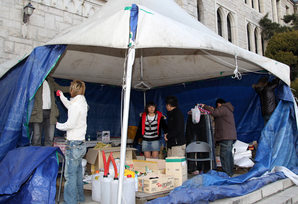 °í·Á´ë Ãâ±³»ýµéÀÌ 30ÀÏ ¿ÀÈÄ 2006³â 4¿ùºÎÅÍ º»°ü ¾Õ¿¡ ¼³Ä¡Çß´ø õ¸· ÀϺθ¦ ÀÚÁø ö°ÅÇß´Ù. ¹ý¿øÀÇ Ãⱳ¡°èÀÇ È¿·ÂÀ» Á¤ÁöÇÏ´Â °¡Ã³ºÐ °áÁ¤¿¡ µû¸¥°Í. Ãâ±³»ýµéÀº õ¸·Ã¶°Å¿Í ÇÔ²² ±âÀÚȸ°ßÀ» ¿°í °í·Á´ë Àç´ÜÀÌ Ç×¼Ò¸¦ ÃëÇÏÇØ¾ßÇÑ´Ù°í ÁÖÀåÇϰí Ãⱳ¡°è·Î ÀÎÇÑ »óó¸¦ Ä¡À¯Çسª°¡±â¸¦ Èñ¸ÁÇß´Ù. Ãâ±³»ýµéÀº ±×·¯³ª Çб³ÃøÀÌ ¹ý¿øÀÇ °áÁ¤À» ¹«½ÃÇÏ°í º¹±³½ÃŰÁö ¾ÊÀ» °æ¿ì õ¸Á³ó¼ºÀ» Àç°³ÇÒ°ÍÀ̶ó°í ÇØ Çб³ÃøÀÇ ´ëÀÀÀÌ ÁÖ¸ñµÈ´Ù.