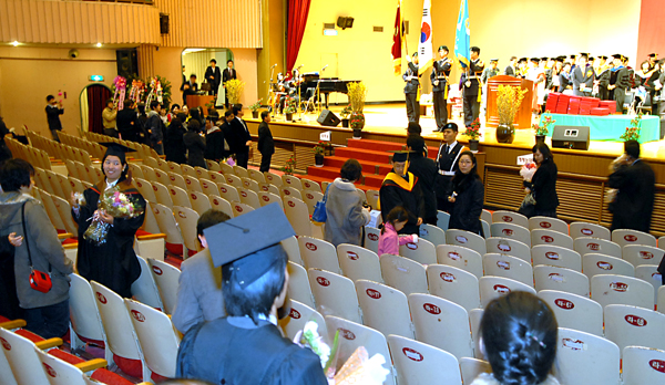 ÇÐÀ§¼ö¿©½ÄÀÌ ¿¸®´Â ´ëÇа¡. 15ÀÏ ¿¸° ¼¿ï ¸ð ´ëÇÐ Á¹¾÷½ÄÀå¿¡¼ ±³Á¤ °÷°÷¿¡ Á¹¾÷»ýµé°ú °¡Á·µéÀÌ »çÁøÀ» ÂïÀ¸¸ç Áñ°Å¿î ÇѶ§¸¦ º¸³»´À¶ó ºÏÀûÀÌ´Â °°Àº ½Ã°¢ ÇÐÀ§¼ö¿©½ÄÀåÀº ÅÖ ºó ä Çà»ç°¡ °üÇàó·³ ÁøÇàµÆ´Ù. ±³°¡¸¦ ³¡À¸·Î ½Ä¼øÀÌ ¸ðµÎ ³¡³ª°í ÃÑÀå°ú ±³¹«À§¿øµéÀÌ ÅðÀåÇϱâ Á÷Àü¿¡´Â ´ëºÎºÐÀÇ ÇлýµéÀÌ ½ä¹°Ã³·³ ºüÁ®³ª°¡ ½ä··ÇÑ Á¹¾÷½ÄÀåÀÌ ¿¬ÃâµÆ´Ù.