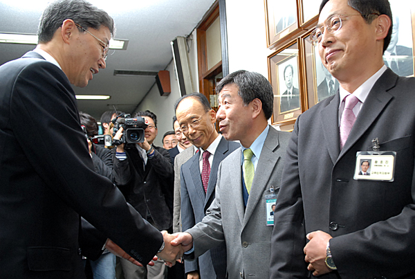 À̸í¹Ú Á¤ºÎ ù ±³À°°úÇбâ¼úºÎ Àå°üÀÎ ±èµµ¿¬ Àå°üÀÌ 29ÀÏ ¿ÀÈÄ ÃëÀÓ½ÄÀ» °®°í °ø½Ä ¾÷¹«¸¦ ½ÃÀÛÇß´Ù. °úÇбâ¼úºÎ¿Í ÅëÇÕÇÑ »õ·Î¿î Á¶Á÷¿¡¼ ¸®´õ½ÊÀ» Æò°¡¹Þ°Ô µÉ ±è Àå°ü(¿ÞÂÊ)ÀÌ ÃëÀӽĿ¡ Âü¼®ÇÑ °£ºÎµé°ú Àλ縦 ³ª´©°í ÀÖ´Ù.