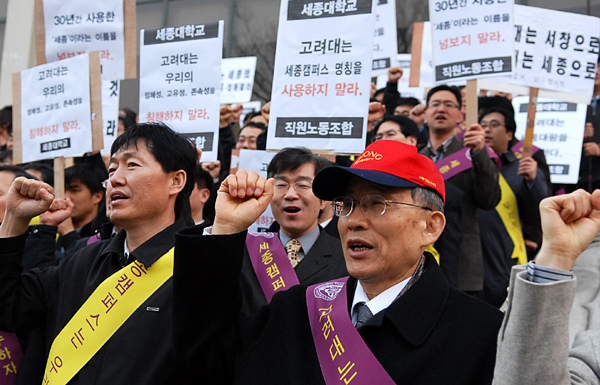 ¼¼Á¾Ä·ÆÛ½º ¸íĪÀ» µÎ°í °í·Á´ë¿Í ¼¼Á¾´ëÀÇ °¥µîÀÌ ÁõÆøµÇ°í ÀÖ´Â °¡¿îµ¥ ¼¼Á¾´ë°¡ 10ÀÏ ¿ÀÈÄ ±³¼ö ±³Á÷¿ø Çлý µ¿¹®È¸ µî ´ëÇÐ ±¸¼º¿ø 2000¿©¸íÀÌ Âü¼®ÇÑ °¡¿îµ¥ '¼¼Á¾Ä·ÆÛ½º ¸íĪ »ç¼ö °áÀÇ´ëȸ'¸¦ ±³³»¿¡¼ ¿°í °í·Á´ëÀÇ ¸íĪ »ç¿ë öȸ¸¦ Ã˱¸Çß´Ù. Áýȸ¸¦ ¸¶Ä¡°í ±³³»¸¦ µ¹¸ç ÇÇÄϽÃÀ§¸¦ ¹úÀÎ ÈÄ ¾ç½Â±Ô ¼¼Á¾´ë ÃÑÀå(¿À¸¥ÂÊ) µî ±³Á÷¿øµéÀÌ ±¸È£¸¦ ¿ÜÄ¡°í ÀÖ´Ù. °í·Á´ë´Â 11ÀÏ ¼¼Á¾Ä·ÆÛ½º ¸íĪ ¼±Æ÷½ÄÀ» °®´Â´Ù.
