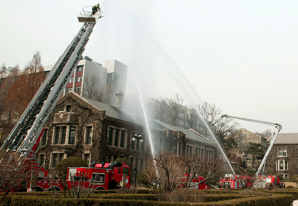 ¼þ·Ê¹® È­Àç»ç°ÇÀ» °è±â·Î ¿¬¼¼´ë°¡ 18ÀÏ ¹®È­Àç »çÀû°Ç¹°·Î ÁöÁ¤µÅ ÀÖ´Â ´ëÇк»ºÎÀÎ ¾ð´õ¿ìµå°ü(»çÀû276È£)°ú ¾ÆÆæÁ©·¯°ü(»çÀû277È£), ½ºÆÀ½¼°ü(»çÀû275È£,»çÁø)¿¡ ´ëÇÑ È­ÀçÁø¾ÐÈÆ·ÃÀ» ½Ç½ÃÇß´Ù. ¼­´ë¹®¼Ò¹æ¼­ ¼Ò¹æÂ÷ 10¿©´ë°¡ µ¿¿øµÈ °¡¿îµ¥ Ãʱâ¼ÒÈ­ ¹× ´ëºñÈÆ·ÃÀ» 1½Ã°£ °¡·® ÁøÇàÇß´Ù. °í·Á´ë, ÀÌÈ­¿©´ë µî ÀϺΠ´ëÇе鵵 »çÀûÀ¸·Î ÁöÁ¤µÈ °Ç¹°µéÀ» º¸À¯Çϰí ÀÖ¾î ´ëÇг» Áß¿ä ¹®È­Àç¿¡ ´ëÇÑ È­Àç´ëºñÈÆ·ÃÀÌ ÀÕµû¸¦°ÍÀ¸·Î º¸ÀδÙ.