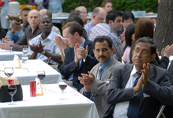 ¿¬¼¼´ë°¡ ÀÌ ´ëÇп¡ ÀçÁ÷ÁßÀÎ ¿Ü±¹ÀÎ ±³¼ö¿Í ¿¬±¸¿øµéÀ» ÃÊû, International Scholars' Day¸¦ °³ÃÖÇß´Ù. ¿¬¼¼´ë´Â 1ÀÏ Àú³á ÃÑÀå°ø°ü ¾ß¿Ü¸¶´ç¿¡¼ 300¿©¸íÀÇ ¿Ü±¹ÀÎ ±³¼öµé°ú ¸¸ÂùÀ» Çϸç Ŭ·¡½Ä ¿¬ÁÖ¸¦ °¨»óÇß´Ù. ÀÌ ´ëÇÐÀÇ ºñÀü°ú Á¤½Å ¹× °¡Ä¡¸¦ ¿Ü±¹ÀÎ ±³¼öµé°ú °øÀ¯ÇØ ±¹Á¦ÀûÀÎ À̹ÌÁö Á¦°í¸¦ À§ÇÑ °Í. Âü¼®ÇÑ ±³¼öµéÀÌ ±èÇÑÁß ÃÑÀåÀÇ Àλ縻¿¡ ¹Ú¼ö¸¦ º¸³»°í ÀÖ´Ù.