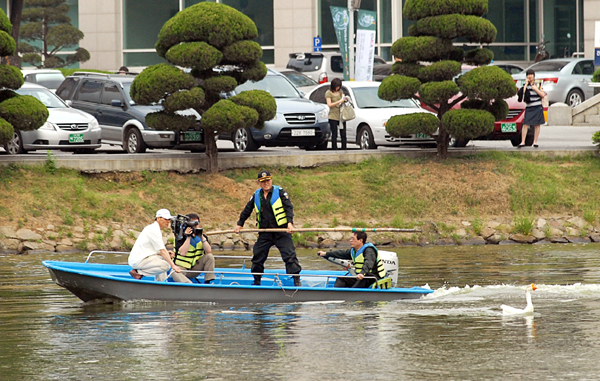 °íº´¿ø¼º Á¶·ù ÀÎÇ®·ç¿£ÀÚ°¡ ¼¿ï ±¤Áø±¸Ã» ÀÚ¿¬ÇнÀÀå¿¡¼ ¹ß°ßµÇ¸é¼ 450 ¹ÌÅÍ ¶³¾îÁø °Ç±¹´ë Àϰ¨È£·Î ºÒ¶ËÀÌ Æ¢¾ú´Ù. °Ç±¹´ë Àϰ¨È£¿¡ ¼½ÄÇÏ´Â ¿À¸® µî Á¶·ùÀÇ ¹è¼³¹°ÀÌ Àü¿° °æ·ÎÀÏ °¡´É¼ºÀÌ ÀÖ´Ù°í ÆÇ´ÜÇÑ °Í. ±¤Áø±¸Ã» Á÷¿øµéÀÌ 7ÀÏ ¿ÀÈÄ Àϰ¨È£¿¡¼ ¶ã並 ÀÌ¿ëÇØ ¿À¸®¸¦ Æ÷ȹÇϱâ À§ÇØ º¸Æ®¸¦ ¸ô°í ÀÖ´Ù.