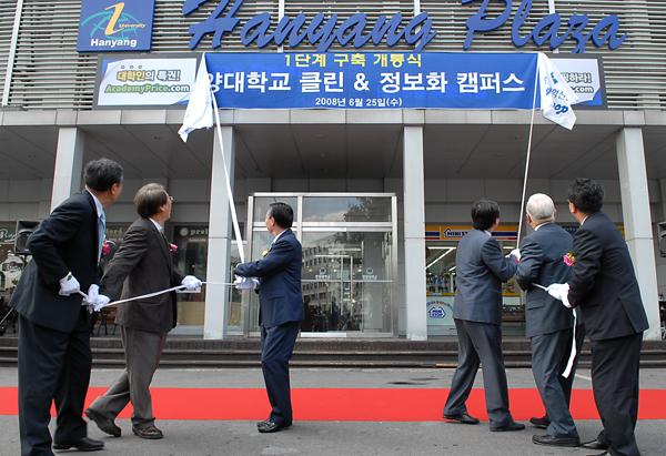 ÇѾç´ë°¡ 25ÀÏ ÀÌ ´ëÇÐ ÇѾçÇöóÀÚ¿¡ ¼³Ä¡ÇÑ ¿Á¿Ü LEDÀü±¤ÆÇ °³Åë½ÄÀ» Çß´Ù. ÇѾç´ë°¡ Çѱ¹´ëÇнŹ®°ú ¼ÕÀâ°í ÃßÁøÁßÀΠŬ¸°&Á¤º¸È Ä·ÆÛ½º 1´Ü°è ±¸ÃàÀÌ ¸¶¹«¸® µÈ °Í. Çö¼ö¸·°ú º®º¸ ¾ø´Â ±ú²ýÇÑ Ä·ÆÛ½º °¡²Ù±â ¿îµ¿À» ¹úÀ̰í ÀÖ´Â Çѱ¹´ëÇнŹ®Àº ÇöÀç ÀÌ ´ëÇÐ °÷°÷¿¡ °¡·Î 6¹ÌÅÍ, ¼¼·Î 1¹ÌÅÍ Å©±âÀÇ ¿Á¿Ü LED Àü±¤ÆÇ 3±â¿Í LMB 25±â, ÀÎÅÍ³Ý Å°¿À½ºÅ©(ÀÎŰ) 27±â µîÀ» ¼³Ä¡ ¿î¿ëÇØ °¢Á¾ °Ô½Ã¹°À» ´ëüÇϰí ÀÖ´Ù. »çÁø ¿ÞÂʺÎÅÍ ±èº´Ã¤ ºÎÃÑÀå, ÀÌÀοø Çѱ¹´ëÇнŹ® ȸÀå, ±èÁ¾·® ÃÑÀå, È«³²¼® Çѱ¹´ëÇнŹ® »çÀå, ¿©È«±¸ ´ë¿ÜÇù·Â ºÎÃÑÀå, ½ÉÁØÇü Çѱ¹´ëÇнŹ® ¹ßÇàÀÎ.