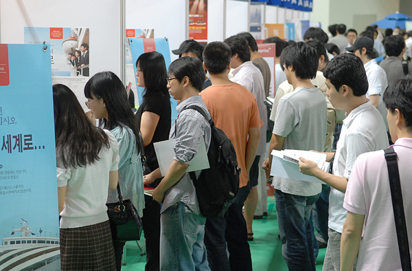 ÇϹݱ⠰øÃ¤°¡ ±â¾÷º°·Î ½ÃÀ۵Ǹ鼭 °³°­°ú µ¿½Ã¿¡ ´ëÇе鸶´Ù Ãë¾÷¹Ú¶÷ȸ°¡ ½ÃÀ۵ƴÙ. °í·Á´ë°¡ 2ÀÏ ±¹³»¿Ü 120¿©°³ ±â¾÷ÀÌ Âü°¡ÇÑ °¡¿îµ¥ ÀÌ ´ëÇÐ È­Á¤Ã¼À°°ü¿¡¼­ 4ÀϱîÁö Ãë¾÷¹Ú¶÷ȸ¸¦ ½ÃÀÛÇØ À̱â¼ö ÃÑÀå°ú ±³¹«À§¿øµéÀÌ ÇöÀåÀ» ¹æ¹® °Ý·ÁÇÏ´Â µî ³ôÀº °ü½ÉÀ» ³ªÅ¸³Â´Ù. ¼­¿ï´ë¿Í °Ç±¹´ë Áß¾Ó´ë ¼º±Õ°ü´ë µîµµ 3Àϰú 4ÀϺÎÅÍ Ãë¾÷¹Ú¶÷ȸ¸¦ ¿­°í ÃÑÀåÀÌ Á÷Á¢ ÇöÀåµ¶·Á¸¦ ÇÒ ¿¹Á¤. 2ÀÏ ±â¾÷ºÎ½º¿¡¼­ »ó´ã Â÷·Ê¸¦ ±â´Ù¸®°í ÀÖ´Â °í·Á´ë Çлýµé.
