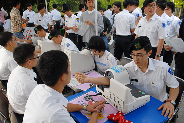 °Ç±¹´ë Çбº´ÜÀÌ ¶æÀ» ¸ð¾Æ ´Üü·Î ÇåÇ÷¿¡ ³ª¼´Â µî °Ç±¹´ë ÃÑÇлýȸ°¡ ÁÖ°üÇÑ ÇåÇ÷Çà»ç¿¡ 900¿© ¸íÀÇ Çлý°ú ±³Á÷¿øµéÀÌ Âü¿©Çß´Ù. Áö³ 29Àϰú 30ÀÏ ÀÌÆ²°£ »ç¶ûÀÇ ÇåÇ÷ 'ÀþÀº Ç÷±â ÇåÇ÷·Î º¸´ä' Çà»ç¸¦ ÆîÄ£ °Ç±¹´ë´Â ´ëÇÑÀû½ÊÀÚ»ç¿Í Áö³ÇØ '»ý¸íÀ» ³ª´©´Â »ç¶û ½ÇõÀÇ ¾à¼Ó' Çù¾àÀ» ¸Î¾î 1000¸íÀÌ ³Ñ´Â ÇåÇ÷ ½ÇÀûÀ» ±â·ÏÇß´Ù. Çбº´Ü ÇлýµéÀÌ ÇåÇ÷À» À§ÇØ Ç÷¾ÐÀ» ÃøÁ¤Çϰí ÀÖ´Ù.