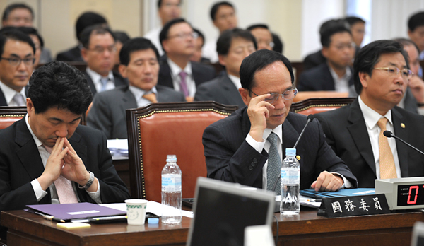 ±¹È¸ ±³À°°úÇбâ¼úÀ§¿øÈ¸ ÀüüȸÀǰ¡ 22ÀÏ ¾Èº´¸¸ ±³°úºÎ Àå°ü°ú ÁÖ¿ä °£ºÎ, »êÇϱâ°üÀåµéÀÌ ¸ðµÎ Ãâ¼®ÇÑ °¡¿îµ¥ ±³°ú±â¼úÀ§ ȸÀǽǿ¡¼ ¿·È´Ù. 2008ȸ°è¿¬µµ ¼¼ÀÔ¼¼Ãâ°á»ê°ú ±â±Ý°á»ê µîÀÌ ÁÖ¿ä ¾È°ÇÀ̾úÀ¸³ª ÀÔÇлçÁ¤°üÁ¦, ¼¼°è¼öÁØÀÇ ¿¬±¸Á߽ɴëÇÐ À°¼º»ç¾÷(WCU)ÀÇ ¹®Á¦Á¡ µî¿¡ ´ëÇÑ ÀÇ¿øµéÀÇ ÁúÀÇ¿Í ÁúŸ°¡ À̾îÁ® ±¹Á¤°¨»çÀÇ ÀüÃÊÀü ¼º°Ý¸¶Á® ³ªÅ¸³Â´Ù. ÇÔ²² Ãâ¼®ÇØ ÁúÀǸ¦ ¹Þ´Â ÀÌÁÖÈ£ 1Â÷°ü(¿ÞÂÊ)°ú ±èÁßÇö 2Â÷°ü(¿À¸¥ÂÊ), ¾Èº´¸¸ Àå°ü(°¡¿îµ¥)ÀÇ Ç¥Á¤ÀÌ Á¦°¢°¢ÀÌ´Ù.