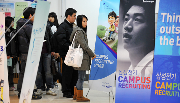 »õ ÇбⰡ ½ÃÀÛµÈ ´ëÇа¡ÀÇ ÃÖ´ë °ü½É»ç´Â Ãë¾÷Àεí ÇÏ´Ù. Ä·ÆÛ½º °÷°÷¿¡ ±â¾÷µéÀÇ Ã¤¿ë¼³¸íȸ¸¦ ¾Ë¸®´Â Çö¼ö¸·ÀÌ °æÀïÇÏµí °É·Á Àִ°¡ ÇÏ¸é ¿ì¼öÀÎÀ縦 ¼±Á¡Å° À§ÇØ Ã¤¿ë»ó´ãÀ» ¹úÀÌ´Â Ä·ÆÛ½º ¸®Å©·çÆÃµµ ½ÃÀ۵ƴÙ. Á¹¾÷À¯¿¹¿Í Ãë¾÷ ÈÞÇÐ µî ¾î·Á¿î Ãë¾÷ȯ°æÀÌ ¸¸µé¾î³½ ´ëÇа¡ ½Ådz¼Óµµ ¼Ó¿¡ ±â¾÷µéÀÌ »ó¹Ý±â ä¿ëÀ» Áö³­Çغ¸´Ù ´Ã¸± ¿¹Á¤À̶ó´Â ¹Ý°¡¿î ¼Ò½ÄÀÌ µé¸°´Ù. 11ÀÏ ¿¬¼¼´ë Çлýȸ°ü Ãë¾÷±¤Àå¿¡¼­ ä¿ë»ó´ãÀ» ±â´Ù¸®°í ÀÖ´Â Çлýµé.