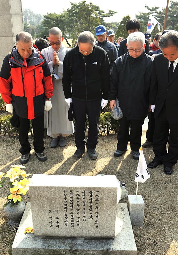 4¡¤19Çõ¸íÀÌ ¿ÃÇØ·Î 50ÁÖ³âÀ» ¸ÂÀº °¡¿îµ¥ µ¿±¹´ë ¿À¿µ±³ ÃÑÀå(°¡¿îµ¥)°ú ±³¹«À§¿øµéÀÌ 9ÀÏ ¼­¿ï ¼öÀ¯¸® 4¡¤19±¹¸³¹¦Áö¸¦ Âü¹èÇß´Ù. ¿ÀÃÑÀå ÀÏÇàÀº 4¡¤19 ´ç½Ã »ç¸ÁÇÑ µ¿±¹´ë Ãâ½Å 6ÀÎÀÇ ¹¦¸¦ ÀÏÀÏÀÌ Âü¹èÇÏ°í ¹¬³äÀ» ¿Ã¸®¸ç 4¡¤19Á¤½ÅÀ» µÇ»õ°å´Ù.