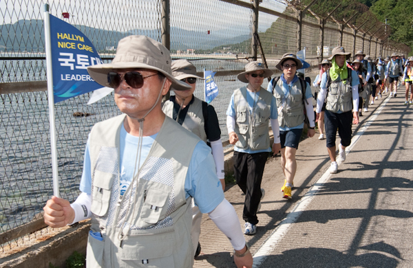 ÇѸ²´ë ÇлýµéÀÌ Ãë¾÷¿¡ ´ëÇÑ °áÀǸ¦ ´ÙÁö´Â ±¹Åä´ëÀåÁ¤¿¡ ³ª¼¹´Ù. ¹æÇÐÀ» ÀÌ¿ëÇÑ °³º° ´ëÇÐÀÇ Å׸¶º° ±¹Åä´ëÀåÁ¤ÀÌ ÇÑâÀÎ °¡¿îµ¥ ÇѸ²´ë Çлý 100¿©¸íÀÌ 27ÀÏ °­¿øµµ ¿Á°è¿¡¼­ 10Àϰ£ 250km °È´Â ´ëÀåÁ¤ ÃâÁ¤½ÄÀ» °®¾ú´Ù. ÇлýµéÀº ¸ÅÀÏ 30km ÀÌ»óÀ» °ÉÀ¸¸ç ¸®´õ½Ê ¿¡ÄÚ¿£Æ¼¾î¸µ, ȯ°æºÎ ¿©ÇàÀÚ ³ì»öÄ·ÆäÀÎ, ´ã·ÂÈÆ·Ã, ¼öÁß ÇѰè°ÔÀÓ, ºÀ»çȰµ¿, ¾ß°£Ç౺ µî ¸ÅÀÏ ÇѰ¡Áö¾¿ÀÇ Ãë¾÷¿¬°è ÇÁ·Î±×·¥°ú ¹Ì¼ÇÀ» ¼öÇàÇÑ´Ù. ÇлýµéÀ» °Ý·ÁÇϱâ À§ÇØ Ã¹ ³¯ ´ëÀåÁ¤¿¡ Âü¿©ÇÑ ÀÌ¿µ¼± ÃÑÀå(¸Ç ¾Õ)°ú ´Ü¿øµéÀÌ µ¿ÇØ¾È ÇØ¾Èµµ·Î¸¦ °È°í ÀÖ´Ù.