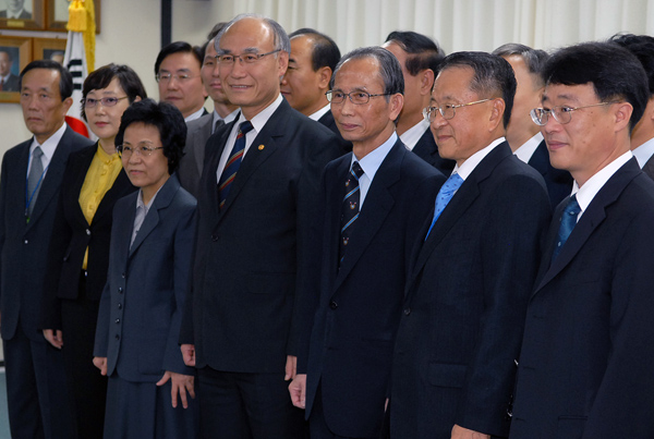 ¹ýÇб³À°À§¿øÈ¸(À§¿øÀå ½ÅÀÎ·É ÀÌÈ­¿©´ë ¹ý´ë ±³¼ö)°¡ 5ÀÏ ±³À°ºÎ ´ëȸÀǽǿ¡¼­ ù ȸÀǸ¦ ¿­¾ú´Ù. ¹ýÁ¶, ¹ýÇаè, ½Ã¹Î»çȸ µî °¢°è ´ëÇ¥ 13¸íÀÇ À§¿øÀ¸·Î ±¸¼ºµÈ À§¿øÈ¸´Â ¹ýÇÐÀü¹®´ëÇпø ¼³Ä¡Àΰ¡ ¼¼ºÎ±âÁØ, °³º° ¹ýÇÐÀü¹®´ëÇпøÀÇ ¼³Ä¡Àΰ¡ ¹× ÀÔÇÐÁ¤¿ø µî¿¡ °üÇÑ ÁÖ¿ä»çÇ×À» ½ÉÀÇÇÑ´Ù. ȸÀÇ¿¡ ¾Õ¼­ ±è½ÅÀÏ ºÎÃѸ®(¿À¸¥ÂÊ ³×¹øÂ°)¿Í À§¿øµéÀÌ ±â³äÃÔ¿µÀ» Çϰí ÀÖ´Ù. ¿ÞÂÊ ¼¼¹øÂ°°¡ ½ÅÀÎ·É À§¿øÀå.