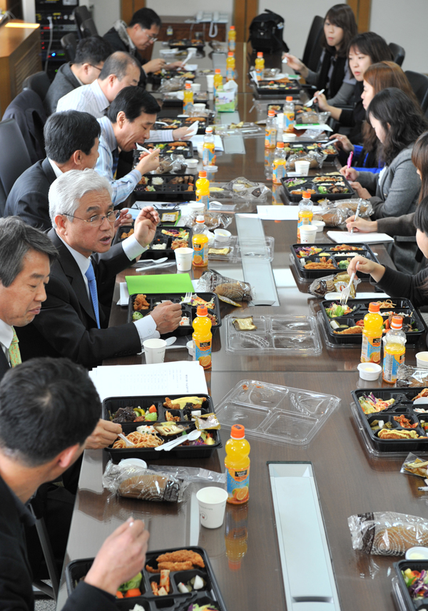 ±è¿µ·¡ µ¿´ö¿©´ë ÃÑÀåÀÌ 9ÀÏ ÀçÇлýµé°ú Á¡½É µµ½Ã¶ôÀ» ¸ÔÀ¸¸ç ¼ÒÅëÀÇ ½Ã°£À» °¡Á³´Ù. ±è ÃÑÀå(¿ÞÂÊ ¼¼¹øÂ°)°ú ±³¹«À§¿øµéÀº ÀÌ ´ëÇÐ º»°ü ´ëȸÀǽǿ¡¼ ¹Ì¸® Âü¼®À» ½ÅûÇÑ 10¿©¸íÀÇ Çлýµé°ú ´ëÈÇÏ¸ç ¾Ö·Î»çÇ× µî ÀǰßÀ» ûÃëÇϰí Çб³ ÀÔÀå°ú »ý°¢À» ¼³¸íÇß´Ù. ±è ÃÑÀåÀº ´ëÈ¿Í ¼ÒÅëÀ» ÅëÇØ Çб³¹ßÀü ÃÖ ¿ì¼± ¼øÀ§°¡ ¹«¾ùÀÎÁö È®ÀÎÇϱâ À§ÇØ 'ÃÑÀå°úÀÇ ´ëÈÀÇ ³¯' À» ¸¶·ÃÇß´Ù°í ¹àÇû´Ù. Áö³ 9¿ù ÃëÀÓÇÑ ±è ÃÑÀåÀº Çг»ºÐ±Ô·Î ħüµÈ ±¸¼º¿øµéÀ» À§ÇØ ÈÇÕÀÇ ºñºö¹ä ºñºñ±â, Áß°£°í»ç ¾ß½Ä ³ª´©±â Çà»ç¸¦ ÇÑ ¹Ù ÀÖ´Ù.