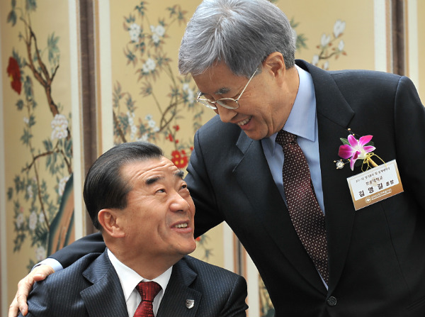 ´ë±³Çù Á¤±âÃÑȸ ¹× µ¿°è¼¼¹Ì³ª°¡ 20ÀÏ ºÎ»ê ·Ôµ¥È£ÅÚ¿¡¼­ ÀÌÆ²°£ÀÇ ÀÏÁ¤À¸·Î ¿­¸° °¡¿îµ¥ ±è¿µ±æ Çѵ¿´ë ÃÑÀåÀÌ Çö À̱â¼ö ȸÀåÀÇ µÚ¸¦ À̾î Â÷±â ȸÀå¿¡ °ø½Ä ¼±ÃâµÆ´Ù. ±è¿µ±æ Â÷±â ȸÀå(¿À¸¥ÂÊ)ÀÌ À̳¯ ÃÑȸ Áß°£¿¡ °®Àº ±âÀÚȸ°ß Áß ÇÔ²² ¹è¼®ÇÑ À̱â¼ö ȸÀåÀÇ ¾î±ú¸¦ °¨½Î¸ç Ä£±Ù°¨À» Ç¥Çϰí ÀÖ´Ù.