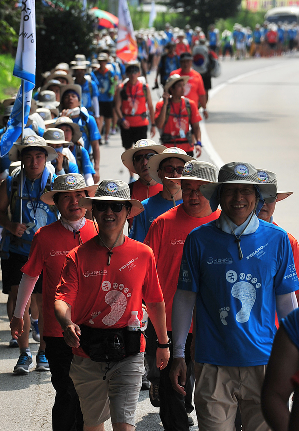ÀϺ»ÀÇ µ¶µµ ħŻ ¾ß¿åÀÌ ³ë°ñȵǰí ÀÖ´Â °¡¿îµ¥ ±¹¹Î´ë°¡ 3ÀÏ ±¤º¹ÀýÀÇ Àǹ̸¦ µÇ»õ±â´Â ±¹Åä´ëÀåÁ¤¿¡ ³ª¼¹´Ù. ¸ðµÎ 120¸íÀÇ ´ëÀåÁ¤ÆÀÀº ÀÌ ³¯ õ¾È µ¶¸³±â³ä°ü¿¡¼ ¹ß´ë½ÄÀ» °®°í °øÁÖ, ±¤ÁÖ, ³ªÁÖ, ¿Ïµµ¸¦ °ÅÃÄ ±¤º¹ÀýÀÎ 15ÀÏ ÇѶó»ê ¹é·Ï´ã Á¤»ó¿¡ À̸£±â±îÁö 16Àϰ£ ÃÑ 390km¸¦ Ç౺ÇÑ´Ù. ¹é·Ï´ã¿¡¼´Â űر⠹°°á°ú "´ëÇѵ¶¸³¸¸¼¼"ÀÇ ÇÔ¼ºµµ ÆÛÁø´Ù. À̼º¿ì ÃÑÀå(¾ÕÁÙ ¿À¸¥ÂÊ)°ú óÀå´ÜÀÌ 1±¸°£¿¡ µ¿Çà Ç౺Çϰí ÀÖ´Ù.