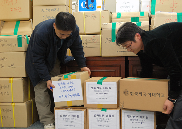 ·Î½ºÄð Àΰ¡½Åû Á¢¼ö°¡ 30ÀÏ ¸¶°¨µÆ´Ù. ÃÑÁ¤¿ø ¹®Á¦·Î ¿ì¿©°îÀýÀº °ÞÀº ·Î½ºÄðÀº ÃÖÁ¾ Àΰ¡´ëÇÐÀÌ °áÁ¤µÉ¶§±îÁö °¥µîÀÌ °è¼ÓµÉ°ÍÀ¸·Î º¸ÀδÙ. 41°³ ´ëÇÐÀÌ ½ÅûÇÑ °ÍÀ¸·Î È®ÀεŠġ¿ÇÑ °æÀïÀÌ ºÒ°¡ÇÇÇϱ⠶§¹®. 30ÀÏ Á¤ºÎÇÕµ¿Ã»»ç Á¢¼öó¿¡¼ Á÷¿øµéÀÌ ´ëÇеéÀÇ ½Åû¼¿Í ÷ºÎÀÚ·á°¡ µç ¹Ú½º¸¦ ¿Å±â°í ÀÖ´Ù.