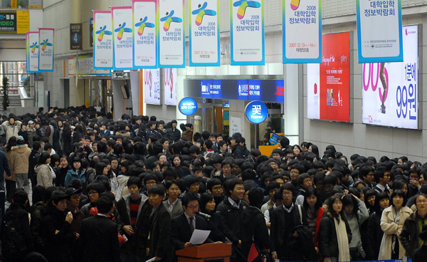 ¼­¿ï´ë °í·Á´ë µî 57°³ ÁÖ¿ä´ëÇÐÀÌ Âü°¡ÇÑ 2008 ´ëÇÐÀÔÇÐÁ¤º¸¹Ú¶÷ȸ°¡ 13ÀÏ »ï¼ºµ¿ ÄÚ¿¢½º¿¡¼­ 4Àϰ£ÀÇ ÀÏÁ¤À¸·Î °³¸·µÆ´Ù. ¼ö´Éµî±ÞÁ¦¿Í ¼ö´É¼ºÀû Á¶±â¹ßÇ¥·Î ÁøÇÐÁ¤º¸¸¦ ¾òÀ¸·Á´Â ¼öÇè»ý°ú ÇкθðµéÀÌ °³¸· Á÷ÀüºÎÅÍ ¸ô·Áµé¾î ±ä ÁÙÀ» ¸¸µé¸é¼­ À̳¯ ÇÏ·ç ¹Ú¶÷ȸÀåÀ» ãÀº °ü¶÷°´Àº 1¸¸1000¿©¸íÀ¸·Î Áý°èµÆ´Ù. °³¸·½ÄÀü ÇлýµéÀÌ ÀÔÀåÀ» ±â´Ù¸®¸ç ÁÙ ¼­ ÀÖ´Ù.