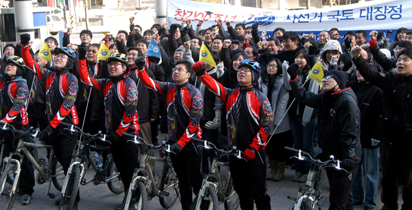 ¿ÃÇØ â°£ 20ÁÖ³âÀ» ¸ÂÀº º»Áö°¡ Áö³ÇØ 12¿ù 16ÀϺÎÅÍ ½ÃÀÛÇÑ ÀÚÀü°Å ±¹Åä´ëÀåÁ¤ÀÌ »õÇØ ù³¯ÀÎ 1ÀÏ ¸·À» ³»·È´Ù. ±èÇØ°øÇ׿¡¼ 3¸í¾¿ 2°³ÆÀÀ¸·Î ³ª´² µ¿¼ÇؾÈÀ» ÀüÁ÷¿øÀÌ µ¿ÂüÇÑ °¡¿îµ¥ ´Þ¸° ´ëÀåÁ¤ÆÀÀº À̳¯ ¿ÀÀü 11½Ã º»»ç°¡ À§Ä¡ÇÑ °¡»êµðÁöÅдÜÁö¿¡ ¾ÈÂøÇϰí ÇØ´Ü½ÄÀ» °ÅÇàÇß´Ù. º»»ç ÀÓÁ÷¿øµéÀÌ ¸¶Áö¸· ÁÖÀÚµé°ú ÇÔ²² ÈûÂù »õÇØ ´ÙÁü°ú °Ý·ÁÀÇ ¶æÀ¸·Î "´ç½Å ¸ÚÁ® ¸ÚÁ® ¸ÚÁ®"¸¦ ¿ÜÄ¡°í ÀÖ´Ù.